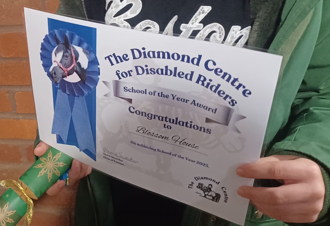 Well done to our Blossom House riders for winning 'School of the Year' at the Diamond Riding Centre. We won for being the most improved riders, always being respectful, being on time for lessons, and for great support and communication from staff!